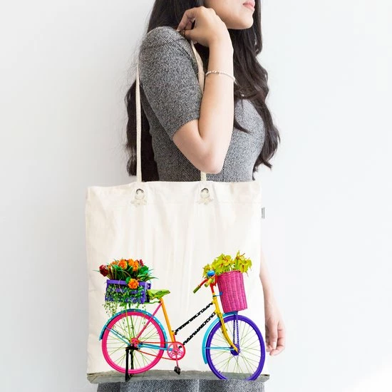 Deze stoere schoudertas met fiets motieven is is gemakkelijk te wassen en te strijken; de kleuren niet vervagen. Je kunt hierin gemakkelijk je strandlaken en zonnebrand meenemen. Bovendien heeft de beach bag heeft een binnenvakje voor bijv. je sleutels en/of mobieltje!