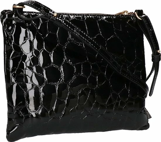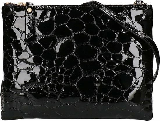Fred de la Bretoniere Crossbody Patent Croco Printed Leather black