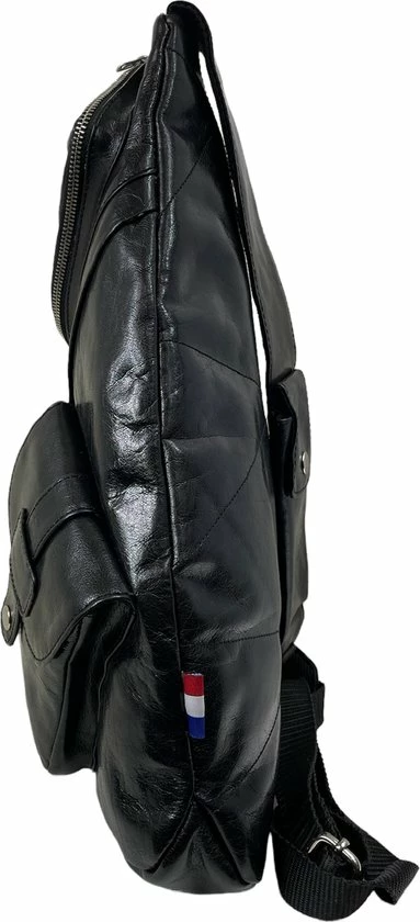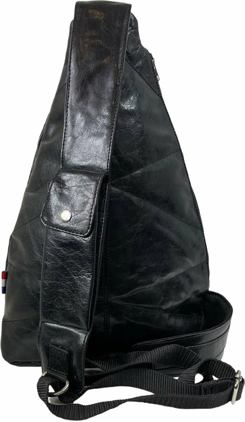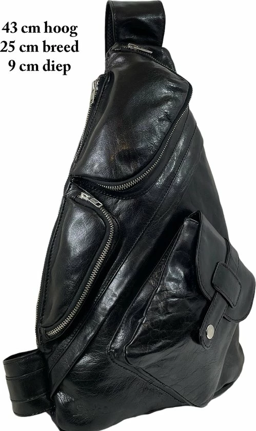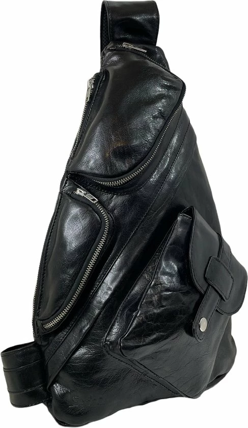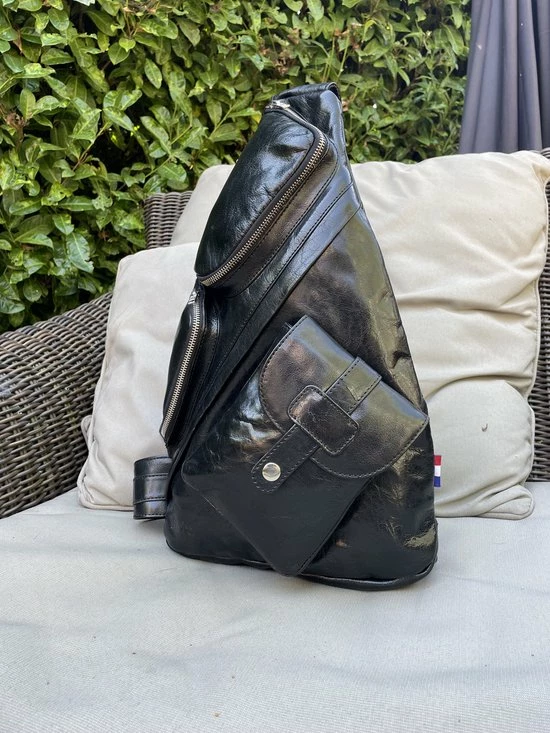 Deze slingbag is niet alleen prachtig om te zien, maar dankzij de slimme constructie ook makkelijk in het gebruik. Het hoofdvak van deze slingbag is te openen aan de zijkant i.p.v. aan de voorzijde. Hierdoor is deze dus ook makkelijk toegankelijk tijdens het wandelen of fietsen zonder de hele tas van je schouder te hoeven halen, Deze leren slingbag is gemaakt van echt volnerf runderleder en het leer is plantaardig gelooid, dus op een milieu vriendelijke manier. Deze tas heeft een glanzende zwarte kleur, dit zal na verloop van tijd en door het verkrijgen van “patina” nog mooier worden en iets meer een matte kleur verkrijgen