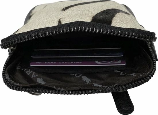 β’ Materiaal: 100% Italiaans Zwart Leer met een dierenprint aan voorzijde.