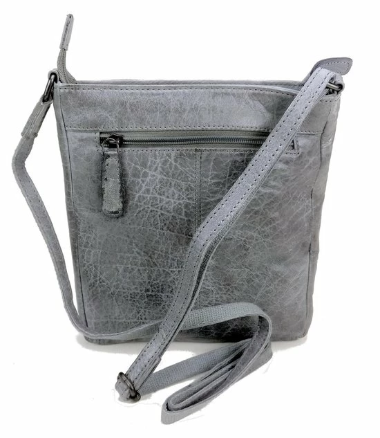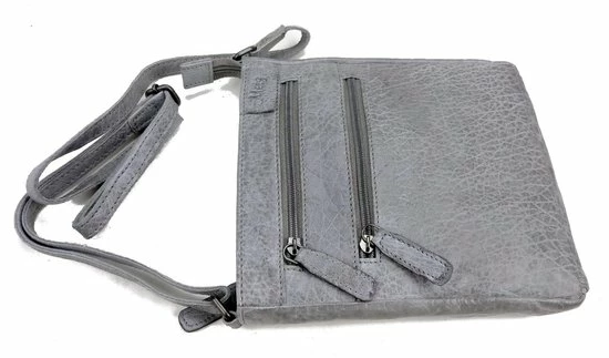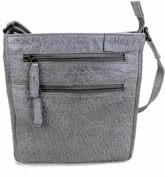 Trendy schoudertasje van Metz van 100 % kwaliteitsleer in grijs met handige ritsvakjes!