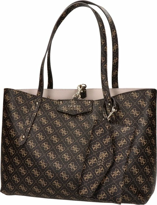 Guess Eco Brenton dames tas. Deze tas van Guess is ideaal en voorzien van meerdere onderdelen! Uitgevoerd in imitatieleer, zowel de binnen als de buitenkant. Bij deze tas wordt ook een binnen tas bij geleverd. Afmetingen: 28 x 40 x 13 cm. De tas omkeerbaar, dit betekent dat de tas met de bruine kant en de roze kant gedragen kan worden. Bijgevoegd: een klein tasje die vastzit aan het handvat + binnenin de tas zit nog een kleinere handtas.