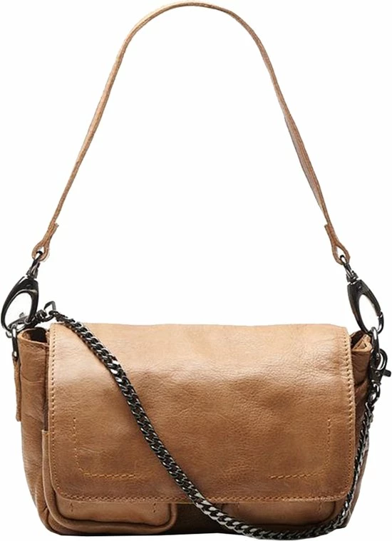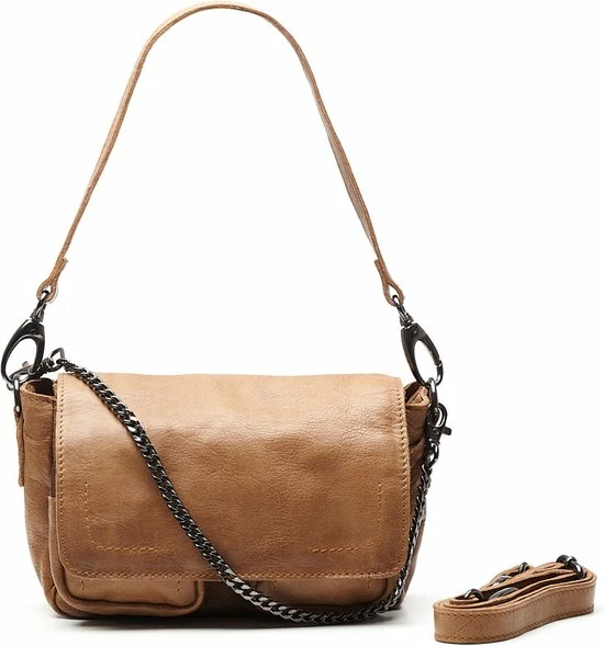 Deze compacte schoudertas valt op door de afneembare ketting schouderband en de flap met magneetsluiting over de tas. Daarnaast heeft de Oslo een effen leren schouderband en wordt er ook een lang, verstelbaar crossover hengsel meegleverd!