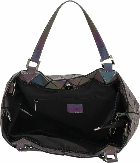 Wat een leukerd, deze handtas uit de Hoxton van Charm London! Je draagt een echte eyecatcher dankzij de toffe driehoekjesprint. Het hoofdvak van de tas sluit, dat door middel van een ritssluiting sluit, is ruim. Dit zorgt er voor dat jij al je spullen een plekje kan geven. Ga jij comfortabel op pad met deze topper?