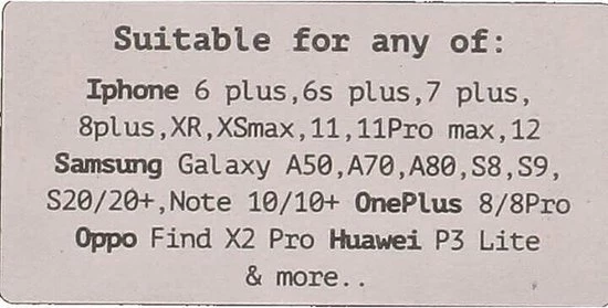 - iPhone 6 Plus, 6s plus, 7 plus, 8 plus, XR, XSmax, 11, 11Pro max en 12