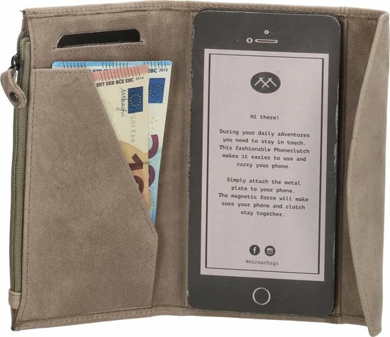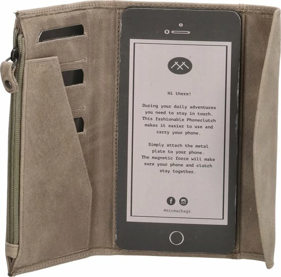 Je hebt overal je belangrijkste spullen bij de hand met dit telefoontasje uit de MalmΓΆ collectie van Micmacbags! Je bevestigd je telefoon gemakkelijk aan het telefoontasje, want de Micmacbags telefoontasjes hebben een handig magnetisch systeem. Je bevestigt het meegeleverde metalen plaatje achterop je telefoon of hoesje en door de magnetische kracht uit het tasje zal je telefoon zo netjes in het telefoontasje blijven zitten, super handig! Verder heeft het telefoontasje vijf creditcardvakjken, een ritsvakje en een insteekvakje. Als je het telefoontasje opent kun je gelijk je telefoon bedienen of een pasje pakken! Je draagt ‘m in de hand met het afneembare polsbandje of als schoudertasje aan de afneembare schouderband. Scoor jij dit toffe item?