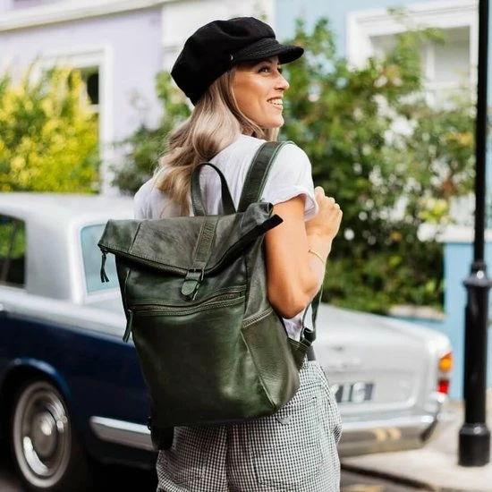 Trendy leren rugtas uit de Cow Lavato serie van Bear Design. Het hoofdvak sluit middels een ritssluiting en kan omgeslagen worden en vervolgens met een magneetslot vastgezet worden. In het ruime hoofdvak zit een gewatteerd vak van 32 x 25 cm voor een iPad of 13 inch tablet. Tevens zit in het hoofdvak een kleine organizer bestaande uit een ritsvak, steekvak en 3 pennenlussen. Op de voor- รฉn achterkant van de rugtas zit een ritsvak wat handig is voor spullen die je snel bij de hand wilt hebben. De twee verstelbare schouderbanden zijn verstelbaar en het rugpand is gewatteerd wat zorgt voor optimaal draagcomfort. Aan de bovenkant van de rugtas zit een handvat/lus waarmee je de tas makkelijk en snel op kunt pakken.