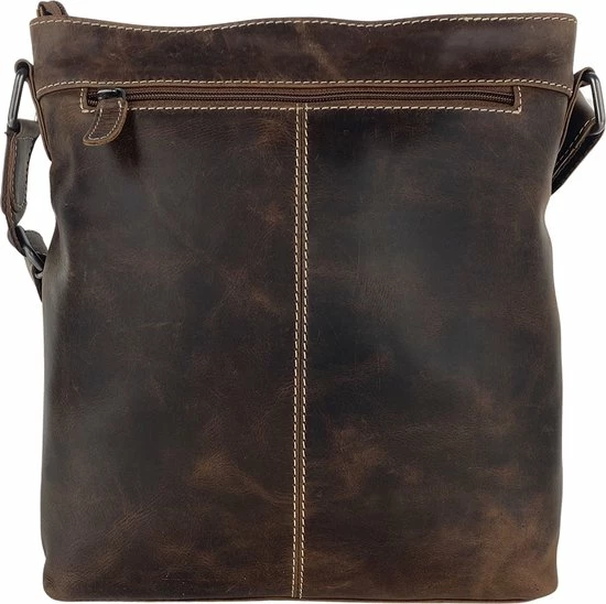 โข Gemaakt van vintage look buffelleer met witte stiksels.