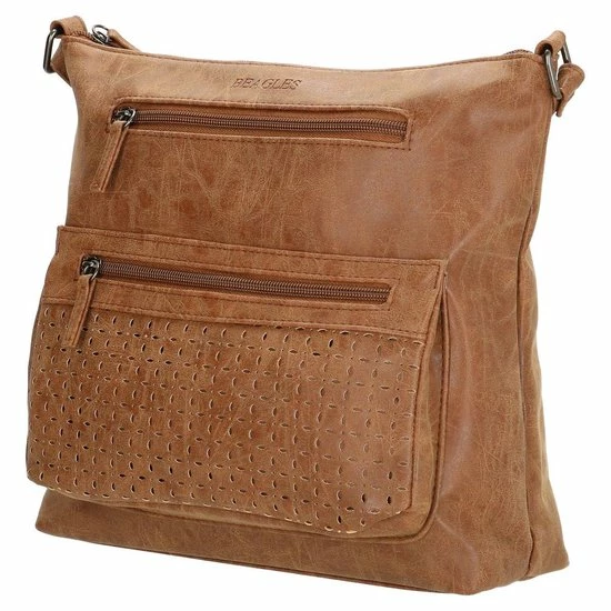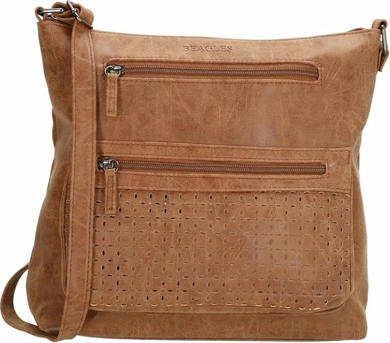 Fijne schoudertas van Beagles met veel handig ritsvakken, in trendy camel bruin!