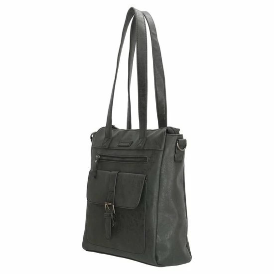 Deze schoudertas uit de serie Amy van Enrico Benetti heeft een stoere uitstraling door het voorvak met gesp. Draag de tas als shopper aan de korte hengsels of aan de lange afneembare en verstelbare schouderband. De tas is praktisch van formaat en biedt verrassend veel opbergruimte. De tas heeft twee voorvakken en een achtervak met rits. Het hoofdvak is opgesplits in twee vakken met een middenvak met rits. Ook zit er een extra ritsvak en steekvakken in het hoofdvak. Zo geef je al je spullen een goed plekje! De tas is gemaakt van mooi kwalitatief imitatieleer en heeft metalen details. Er zijn drie modellen damestassen beschikbaar binnen de Amy serie, allemaal afgewerkt met het stoere voorvak met gespen. De tassen zijn verkrijgbaar in veel verschillende kleuren.