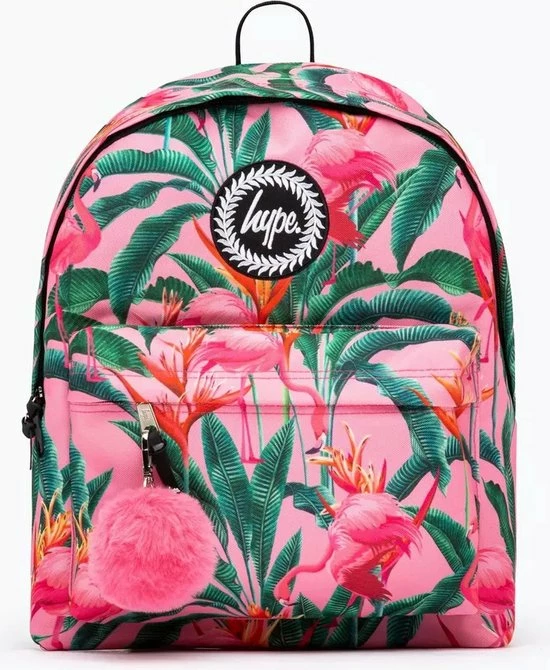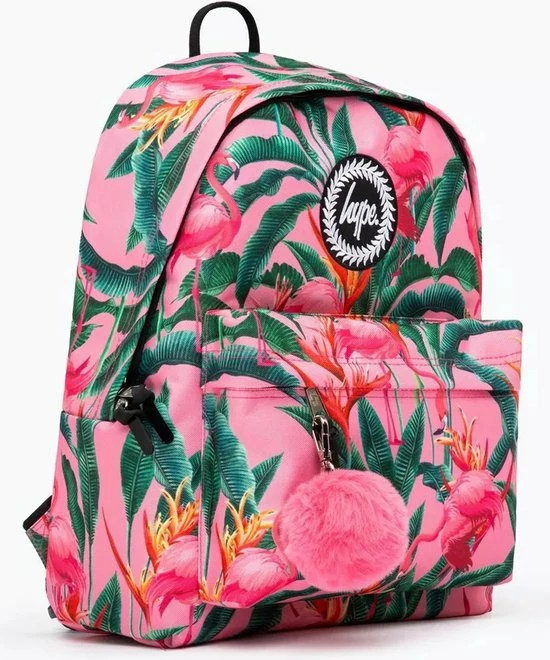 Maak kennis met de HYPE. Flamingo Rainforest Backpack, onderdeel van de HYPE. 2022 Back to School-collectie. Ontworpen in onze standaard rugzakvorm, met een all-over print van roze flamingo-regenwoud. Afgewerkt met geborduurde HYPE. embleem en een voorvak met een rubberen ritstrekker. Met riemen die ultiem comfort bieden met precies de juiste hoeveelheid vulling. Combineer met het bijpassende trekkoord, draagtas, lunchbox, etui, schrijfgerei, portemonnee en waterfles om het schooljaar in stijl te beginnen. Alleen schoonvegen.