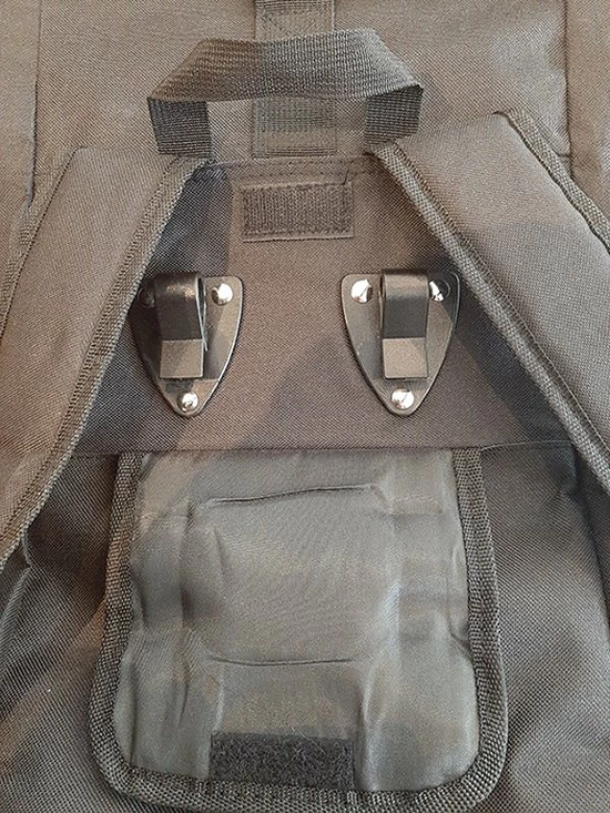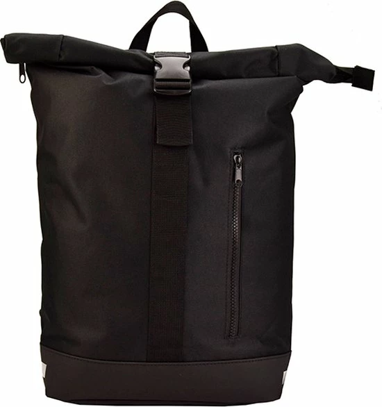 Fiets/rugtas met op voorzijde een ritsvakje. Met een handvat en rugbanden. Voorzien van een rol/ritssluiting. Achterzijde met fietshaken die door een klepje met klittenband zijn afgedekt, om er geen hinder van te hebben bij het dragen op de rug en tevens draagt het bij aan de uitstraling van de tas. Erg cool en leuke uitstraling in combi met praktisch en veiligheid verhogend. Van 600D/pvc materiaal.