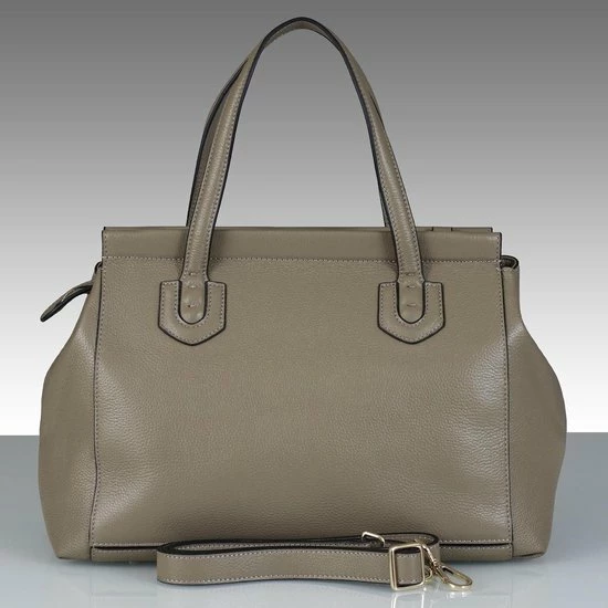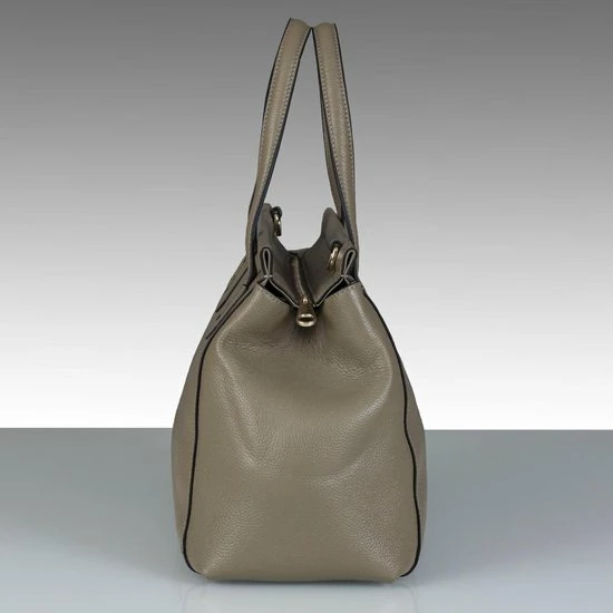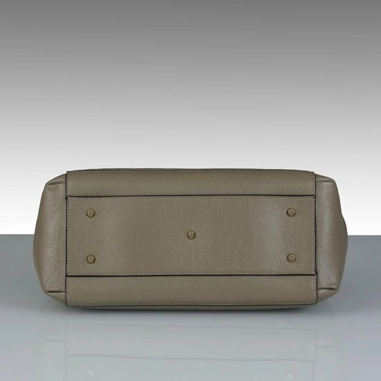 – De sluiting van de tas volgt via een metalen ritssluiting, en vijf metalen stand voetjes aan de onderkant van de tas, allemaal uitgevoerd in de kleur Pale (licht) goud.
