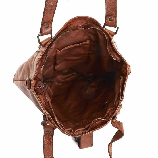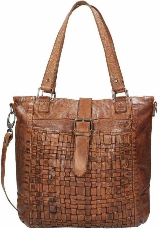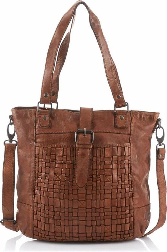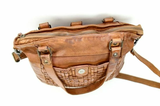 Mooie, grote leren schoudertas met een voorkant van gevlochten leer uit de Cow Lavato serie van Bear Design. De tas heeft een hoofdvak die afsluitbaar is met een rits met daarover een lip met magneetsluiting. Binnenin zit een ritsvakje en een steekvakje voor bijv. je telefoon. Op de voorzijde van de tas zit een groot steekvak. Op de achterzijde zit een ritsvak. Met de twee middellange schouderbanden kun je de tas kort over de schouder of in de hand dragen. Met de lange, verstelbare band kun je de tas op de door jou gewenste lengte over de schouder of schuin over het lichaam (crossbody) dragen.