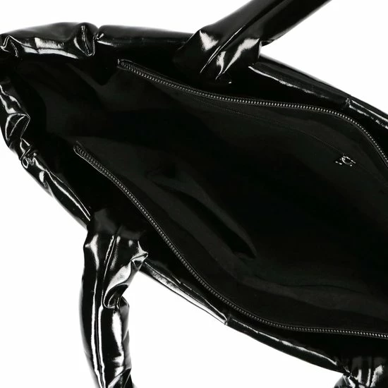 Deze zwarte puffy shopper van Sacha is een echte musthave! Door het opvallende design en de lak look zul je zeker een fashion statement maken. De tas wordt gesloten middels een ritssluiting en aan de binnenzijde vind je een insteekvak en een ritsvakje. De afmetingen van de shopper zijn 33x42x12 cm (HxBxD) en de hengsels hebben een lengte van 47 cm.