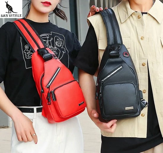 Deze compacte vegan leren slingbag is een niet al te grote schoudertas/cross body tas.