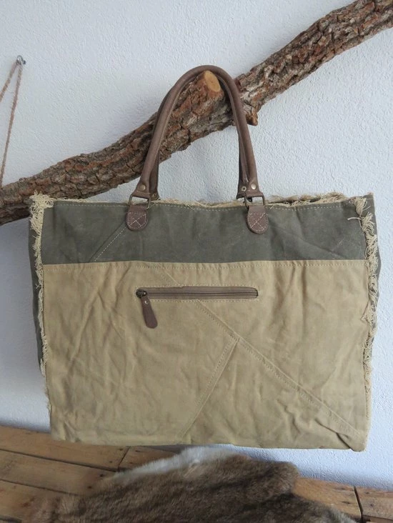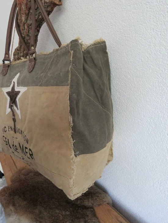Promo β Goedkoopste β Myrabags Strandtas/Schoudertas XXL Tas Van Canvas En Leer π π