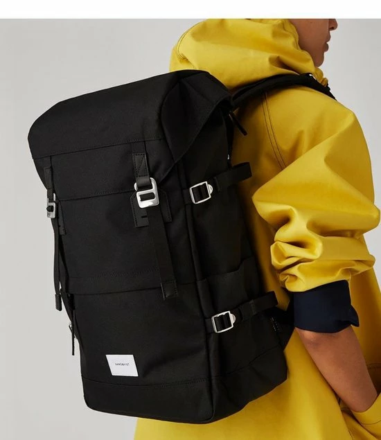 De Sandqvist Harald Black is een stoere rugzak van het merk Sandqvist. De rugzak is gemaakt van recyclede PET flesjes. Het hoofdvak sluit middels een flap met metalen haken. De achterzijde van de rugzak heeft een ritsvak met ruimte voor een 13 inch laptop. Aan de zijkant van de rugzak bevinden zich nog twee ritsvakjes waar je belangrijke kleine eigendommen in kan opbergen. De schouderbanden zijn in lengte verstelbaar, hierdoor kan zelf de ideale lengte worden bepaald. De Harald Rugtas is de perfecte rugzak gewoon voor dagelijks gebruik of op reis.