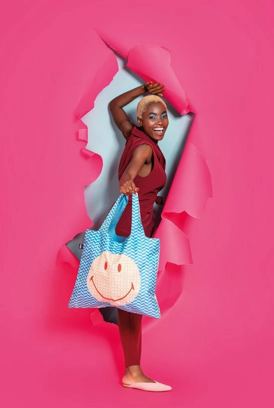 De shopper is voorzien van twee verschillende Smiley printen. Het hengsel van de tas is 27 cm waardoor hij zowel in de hand als op de schouder gedragen kan worden. De shopper kan een maximum van 20 kg dragen. In de tas zit een extra opbergzakje voor eventuele boodschappen.