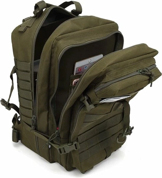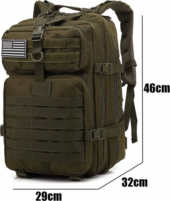 De Tactical Army rugzakken zijn bedoeld om genoeg uitrusting te bevatten voor een missie van een hele dag. Deze rugzak, gemaakt van lichtgewicht waterafstotend nylon, houdt uw spullen veilig en droog. De schouder- en taillebanden zijn dik gevoerd en verstelbaar om maximaal comfort te bieden tijdens uw reis.