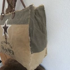 Promo โญ Goedkoopste โญ Myrabags Strandtas/Schoudertas XXL Tas Van Canvas En Leer ๐ ๐