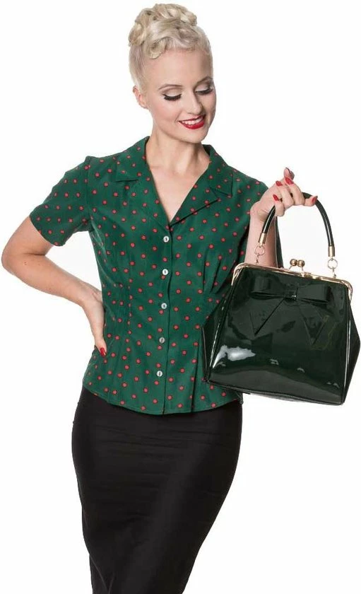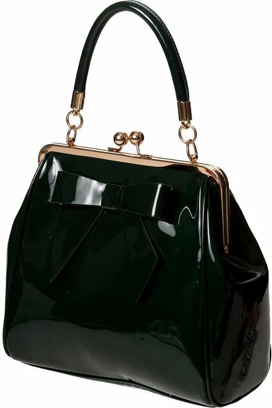 Dancing Days. Een leuke vintage stijl handtas gemaakt van glanzend lak met een strik detail op de voorkant.