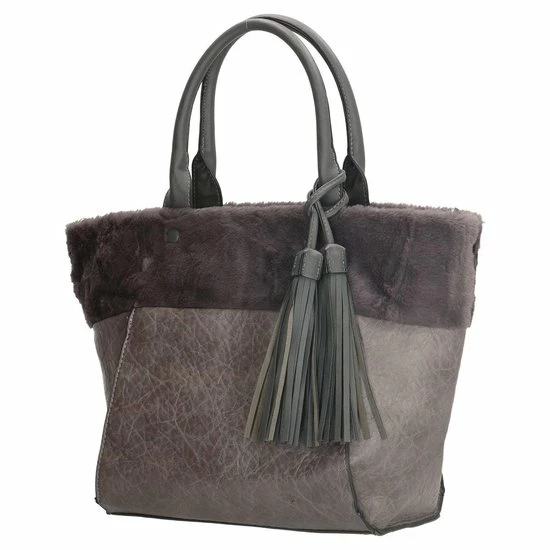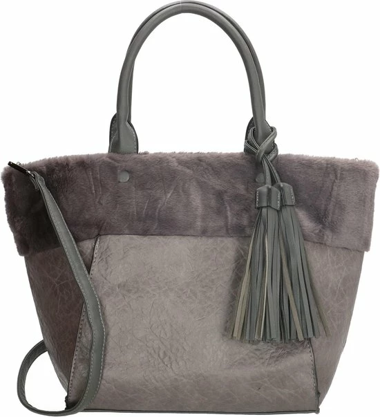 Leuke trendy tas van Dudlin in grijs met een rand van nep-bont!