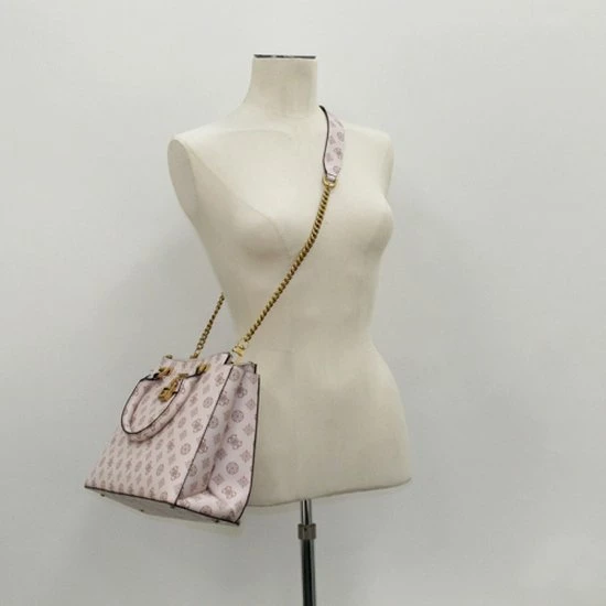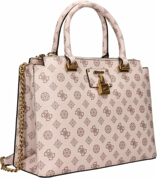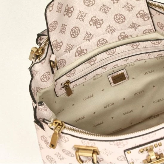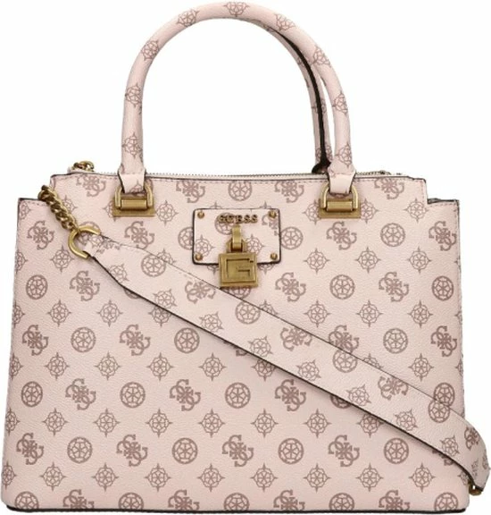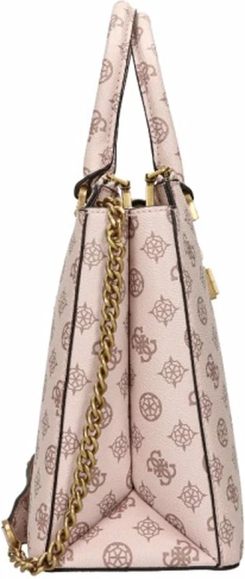 Voor een avondje uit of een middag je naar de stad komt deze ruime schoudertas van Guess als geroepen. Dit model uit de Centre Stage collectie is uitgevoerd in de kleur wit waarop het logo meerdere malen te zien is. Het goudkleurig hardware, waaronder de chunky chain, is een onmisbare toevoeging aan het design. Het is als het ware een echte statement piece onder je arm. Aan de achterkant van de tas zit een ritsvak waar je kleinere spulletjes in kunt bewaren