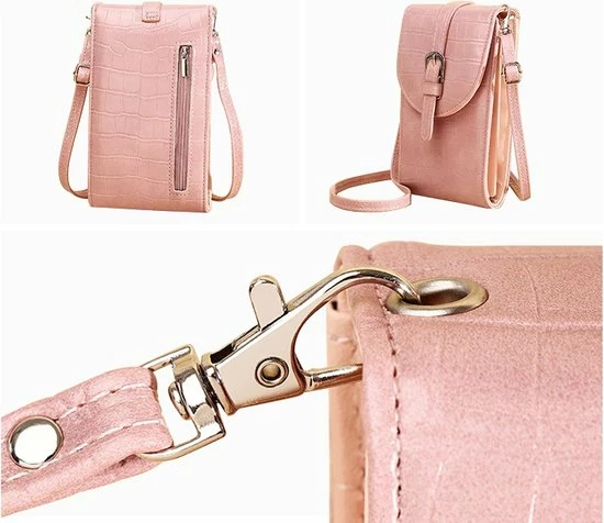 โDe schoudertas heeft een stijlvol Croco motief design, is lichtgewicht en superhandig om mee te nemen. Bescherm je mobiele telefoon en andere kostbare spullen zoals bankpassen en contant geld tegen diefstal of verlies โ Voortaan is het niet meer noodzakelijk om telkens, voor kleine spullen, een grote tas mee te nemen!โ