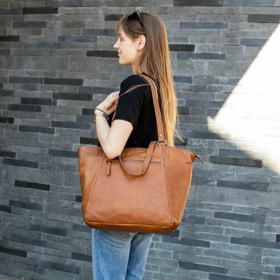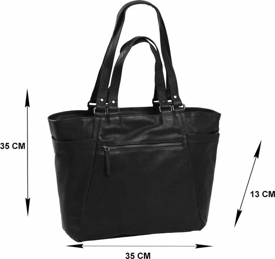 Deze stijlvolle shopper uit de Kassel serie is van runderleer. Wat direct opvalt aan deze trendy damestas zijn de 2 hengsels in verschillende afmetingen. Hierdoor kun je deze shopper gemakkelijk in de hand meenemen maar ook heel handig over je schouder dragen. Deze dames shopper heeft op de voor- en achterkant een groot ritsvak bijna over de gehele breedte van de tas. Voor de rest valt deze tas vooral op door zijn eenvoud en de 2 steekvakken aan beide zijkanten. De shopper sluit met een rits over de gehele breedte van de tas. De binnenkant van deze tas heeft 3 vakken waarvan het middelste vak ook wel tussenvak sluit met een rits. Het voorste vak heeft verschillende steek en ritsvakken en het achterste vak heeft een laptopvak voor een 14 inch laptop. Deze stijlvolle Chesterfield shopper is gemaakt van hoogwaardig Wax Pull-up leer. Wax pull-up leer wordt gekenmerkt door een zachte en soepelere structuur. Eventuele gebruikssporen kun je makkelijk wegwrijven door de speciale wax behandeling die de tas heeft ondergaan. Zo blijft je shopper jarenlang als nieuw. Kenmerken van deze shopper zijn: * 2 verschillende lengtes schouderbanden * binnenvak met ritssluiting * 14 inch laptopvak * ritsvak op de achterkant * ritsvak op de voorkant * steekvakken aan beide zijkanten * Wax Pull-up Leer Rundleer is een natuurproduct, waardoor kleurafwijking kunnen voorkomen. Wil jij een trendy leren dames shopper dan is deze Chesterfield Shopper Kassel Zwart, voor jou de juiste keuze.Kleur: ZwartStof: LeerAfmeting: * 35cm breed * 13cm diep * 35cm hoog Wij zijn officieel Chesterfield dealer. Je kunt voor de volledige garantie bij ons terecht.