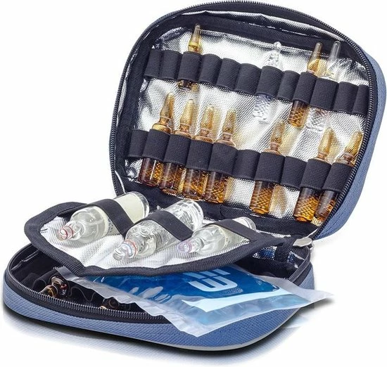 Een sportieve medische tas met een praktisch design. De inrichting van deze tas is aanpasbaar aan ieders individuele noden. Ze bevat verschillende individueel aanpasbare compartimenten voor een ordelijke organisatie van instrumenten en medicatie. β’ Individueel aanpasbaar interieur door gewatteerde tussenschotten met duurzaam en sterk velcro β’ Ruim voorvak met elastische banden en 2 extra opbergvakken β’ 2 transparante netzakjes β’ Vlak opbergvak voor clipboard of documenten β’ Isothermische ampullenhouder voor 41 ampullen β’ 2 zijvakken voor persoonlijke bezittingen β’ Kaarthouder β’ Clip board β’ De 4 binnenwanden zijn voorzien van elastische banden voor fixatie van materiaal β’ Handvat, schouderriem en rugzak met individueel aanpasbare riemen + heupriem voor extra fixatie β’ Vlak achtercompartiment kan ook fungeren als band voor bevestiging op trolley β’ Inclusief handige mini naaldcontainer en herbruikbaar Cold/Hot pack β’ Beschermende Floor-Rest elementen onderaan de tas β’ Afgebeelde instumenten niet meegeleverd β’ Materiaal: Polyester, goed afwasbaar en waterbestendig