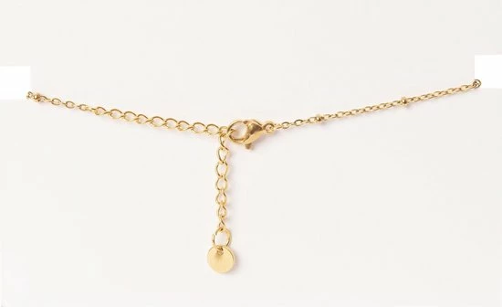 Het gouden armbandje is ongeveer 14 cm lang exclusief de sluiting. Door het verlengkettinkje aan de andere kant kun je het armbandje stellen op de maat die jij prettig vind. Het verlengkettinkje is ongeveer 5 cm. Zowel de armbandjes als de letters zijn stainles steel, rvs dus. Dat betekent dat het materiaal roestvast is en nikkelvrij.